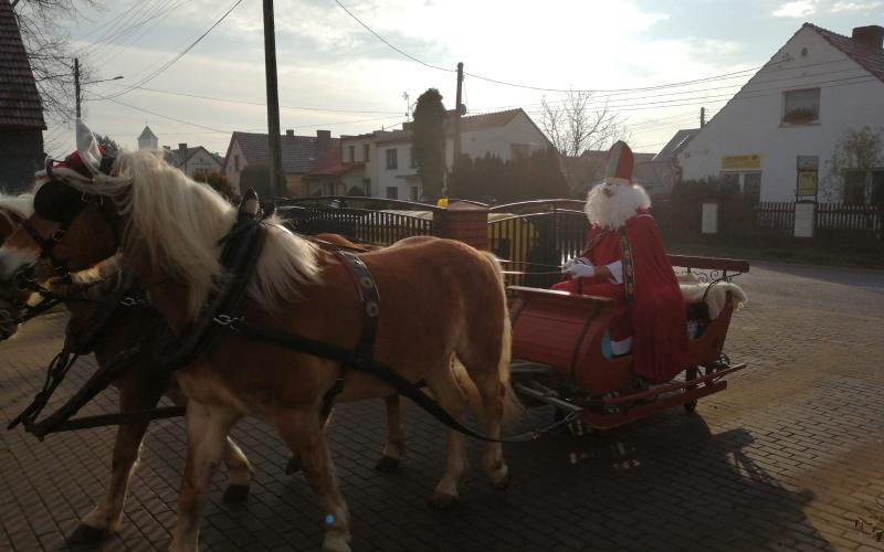 4 grudnia w naszym przedszkolu gościliśmy Świętego Mikołaja, który zawitał do nas tradycyjnie bryczką zaprzęgnietą w konie. Grupa "Pszczółek" i "Biedronek" cierpliwie oczekiwała gościa na przedszkolnym placu zabaw, a gdy nadjechał wszyscy powitali go świąteczną piosenką. Dzieci otrzymały kolorowe prezenty i pozowały do pamiątkowych zdjęć ze Świętym Mikołajem. Do zobaczenia w następnym roku!