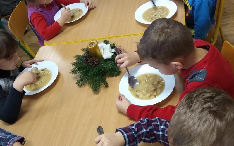 W dniu 17 grudnia w godzinach południowych zasiedliśmy wspólnie z naszymi wychowankami do wigilijnego stołu. Już od godzin rannych dzieci brały udział w świątecznych zajęciach, poznawały tradycje i zwyczaje świąteczne. Miały możliwość rozwiązywania zagadek i rebusów o tematyce bożonarodzeniowej. Dzień upłynął na śpiewaniu kolęd i składaniu sobie życzeń, w radosnej atmosferze.