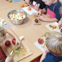 W tygodniu, w którym mówiliśmy o warzywach i owocach, a także o zdrowym odżywianiu w grupie starszej i młodszej dzieci przygotowały sobie samodzielnie sałatkę owocową na drugie śniadanie. Było dużo radości, kształtowania umiejętności, a także smakowitości! „To była najlepsza sałatka owocowa na…