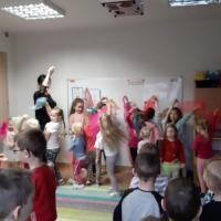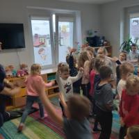 Dnia 28 stycznia przedszkolaki obu grup spotkały się w jednej sali aby wziąć udział w zajęciach integracyjnych teatralno- muzyczno- ruchowych. Na wstępie dzieci obejrzały teatrzyk cieni pt: "Smok wawelski". Zainspirowane teatrem niektóre z nich same odgrywały role bohaterów bajki, po czym…